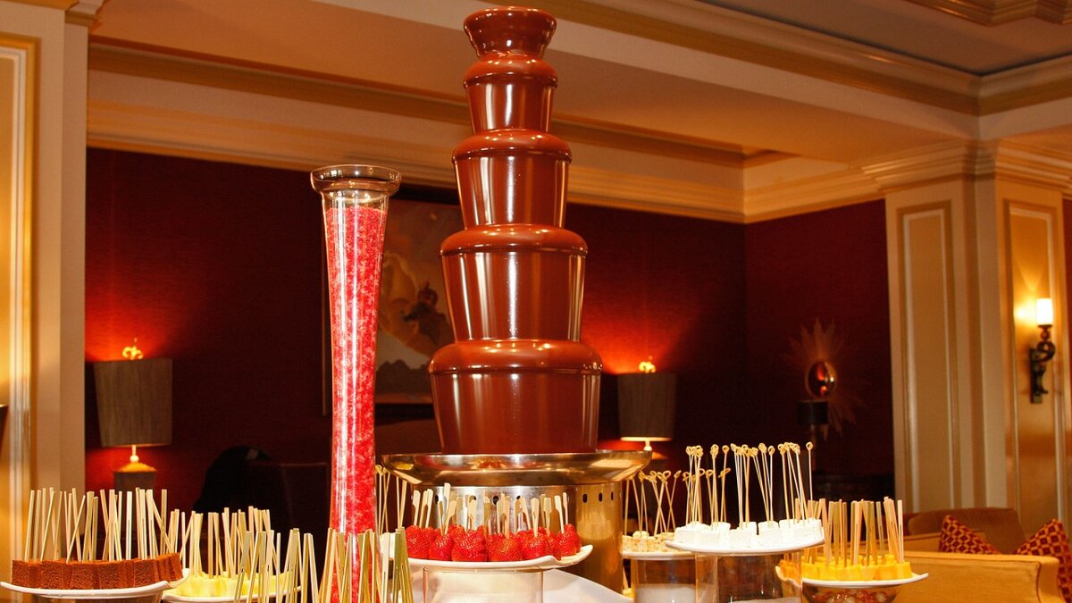 Что представляет собой шоколадный фонтан? Высокая металлическая многоярусная конструкция, которая подпитывается от электросети. Но вместо воды струится каскадами жидкий шоколад.