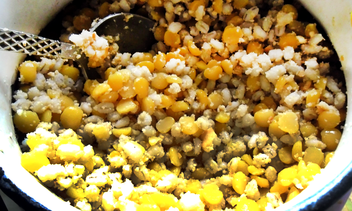Есть сторонники теории, что карп и карась кушают и «нюхают» совершенно разные прикормки… От этого и стратегии разные. Однако я лично давно заметил, что два этих красавца кушают ровно одно и тоже. Что один на опарика пойдет как угорелый, что второй. Ровно и про прикормки. Есть у меня один рецепт, про него и хочу рассказать. Прикормка на карася своими руками. Пошаговый рецепт Уловистая? Да вполне! Если я собираюсь на карася или на карпа, то делаю только ее. Особенно летом, когда вода прогрелась и он начинает капризничать. Так вот, прежде всего ингредиенты. Список тут небольшой, он в заголовке. С некоторые дополнениями: Теперь к самому, та сказать — этапу заготовки нашей каши. Это не сыпучка будет, как вы уже поняли, а каша. Я ее примерно делаю за сутки, до рыбалки, чтобы настоялась. Этапов тут два. Этап №1. Чистим чеснок и давим чеснокодавкой в емкость любую. Сок, кашу, все что с чеснокодавки выйдет и останется внутри — не выбрасываем. Все в емкость. Далее — банку кукурузы туда же.