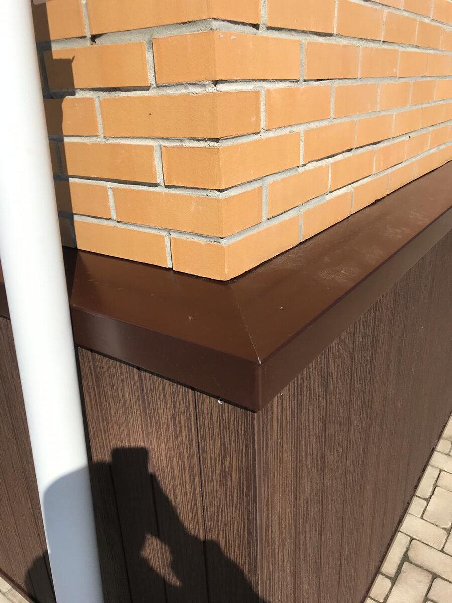 Цоколь. У нас часто приобретают панели для того чтобы закрыть фундамент или цоколь. Основной вопрос. Как будет выглядеть с отливом? Вот приблизительно так будет выглядеть нижняя часть дома, а фактура и цвет на ваш вкус Говорят что японский фиброцемент не сочетается с домом из бруса. А мы говорим что при грамотном подходе сочетается всё. Вывести цоколь в идеальную плоскость на так просто. Фундамент делают одни. Дом другие. Отмостку третьи. А конечный вид придается при монтаже фасадной панели. Панели навешиваются на подконструкцию. Отсутствуют мокрые процессы, поэтому можно работать круглый год. Так как панель прикручена к обрешётке, не стоит боятся что она отпадет весной, как это бывает с приклеенным камнем. Так может выглядит выход вентиляции. Перерубы непростое место. Немного проще когда фасад и цоколь выполнены по одной технологии. Вот, сочетания кирпича и японской панели Сочетание с красным кирпичом Сочетание с брусом. У японского производителя более пятисот фактур и цвето