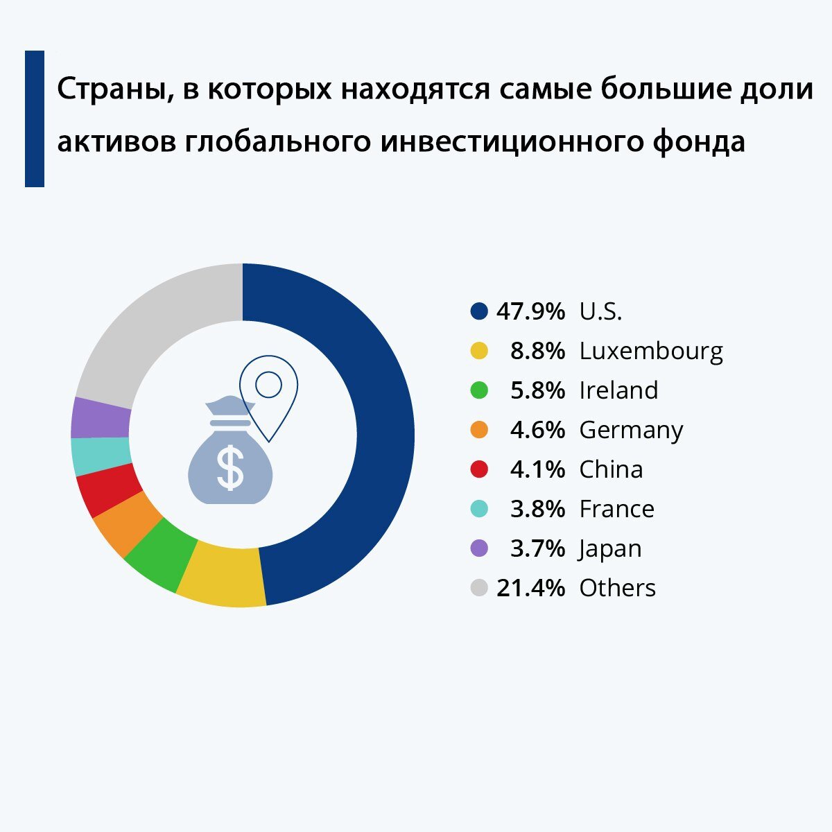 Страны, в которых находятся самые большие доли активов глобального инвестиционного фонда.