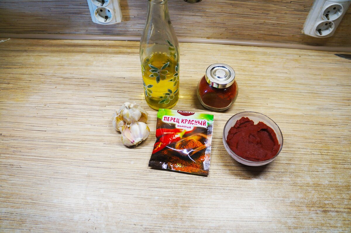 Соус довольно простой в исполнении, но вкусный Нам понадобится: · Растительное масло – 120гр · Томатная паста столовая ложка с горкой · Чеснок – 8 зубчиков · Перец паприка – столовая ложка · Перец чили – чайная ложка Томатную пасту выкладываем на сковороду или другую металлическую емкость. Добавляем паприку и чили Чили можно брать больше или меньше, в зависимости от вашего вкуса. На сколько вы любите острое. Чеснок давим или мелко шинкуем Перемешиваем все ингредиенты Масло прокаливаем. Раскаленным маслом заливаем полученную смесь Затем все тщательно перемешиваем. Я дополнительно пропускаю через блендер, для получения более однородной массы. Всем приятного аппетита. До встречи на кухне.
