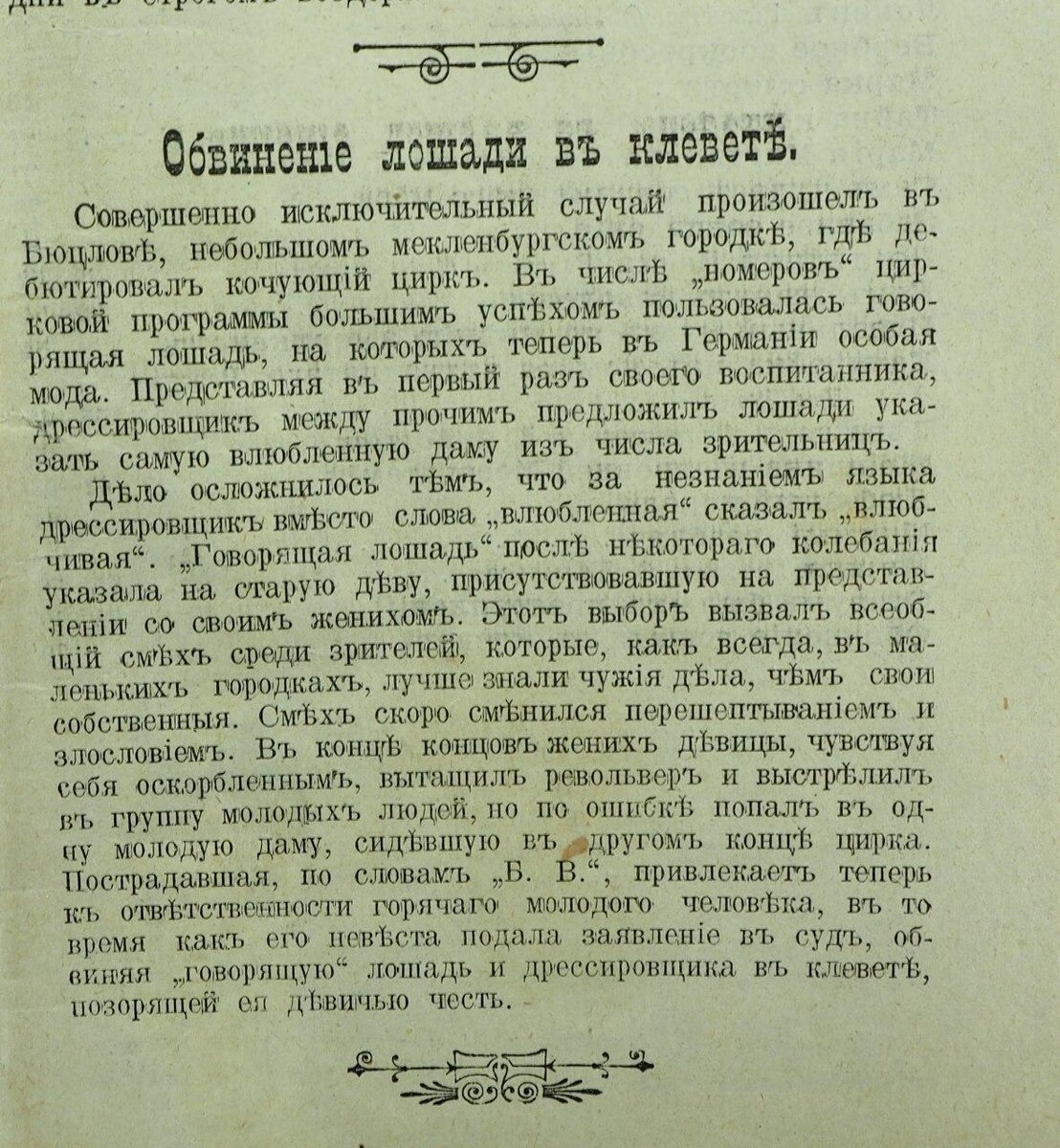 Обвинение лошади в клевете. Сборник русской и иностранной литературы, 1914.