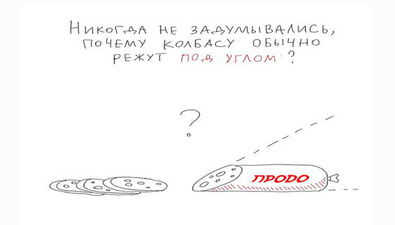 Вы когда-нибудь задумывались о том, почему колбасу нарезают под углом? Давайте раскроем эту тайну! 1.Оценка палки колбасы Благодаря такой нарезке покупатель может по-достоинству оценить качество изделия. Колбаса может быть слишком жирной или наоборот постной, может содержать посторонние предметы и тп. Глядя на овальный срез, покупатель оценивает палку не просто с одного торца, но и изнутри. 2.Обман зрения Когда колбасу режут под углом, она создает выгодный визуальный эффект. Ее кажется больше. Такого овального кусочка колбасы достаточно на ломик хлеба, в отлисае от нескольких круглых. А это выгодно.Экономия. Нарезка в виде овальных ломтиков выглядит намного больше, чем нарезка из круглых кусочков. 3.Проще резать Когда вы пытаетесь отрезать круглый кусочек от палки, нож находится перпендикулярно палке, что заставляет ее крутиться по столу. А вот если резать под углом, то она практически не двигается/