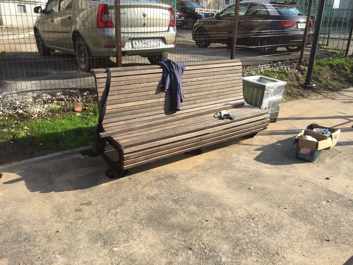 Что ж мы делаем по факту? Автор, давай пруфы! Хватит лирики! Держите! Отгрузили и смонтировали небольшой стильный дворик. Тут были прайсовые позиции (лавки, урны и воркаут комплекс). И были 3 индивидуальные: