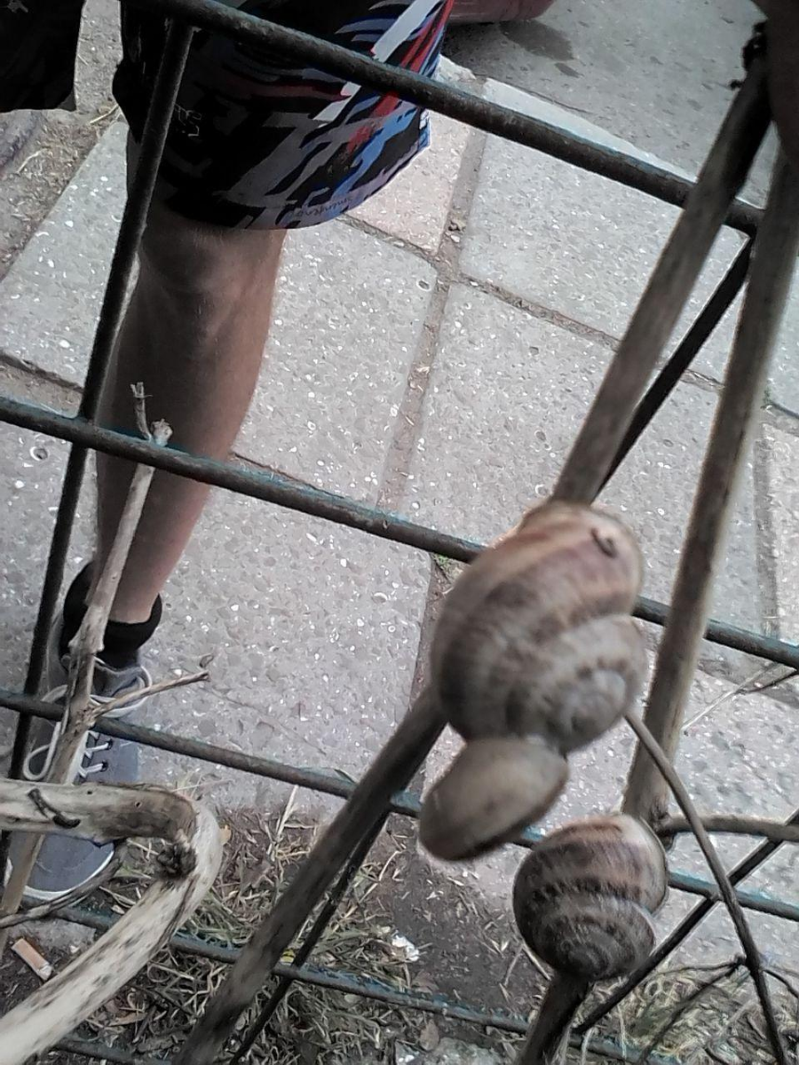 В силу того же карантина я жил один и сделал привычку заниматься физкультурой на этой площадке. Переступив каждый раз через компанию сбившийся в гурт улиток на моей пороге, я обходил все это великолепие с художественными деталями. Вот в углу у прохода хозяин соорудил украшение из высоких гладких валунов. #Камни поближе - возле лестницы, совсем высокие - у стены. Они были слеплены цементом и выглядели не слишком нарядно. Понятно, что большая часть удовольствия от этого арт-объекта- в свободе Равлика ваять по своему вкусу и представлять на обозрение постояльцам. Здесь же находилась мозаика-орнамент из черных и белых маленьких окатышей. Эти хозяину удавались вполне.