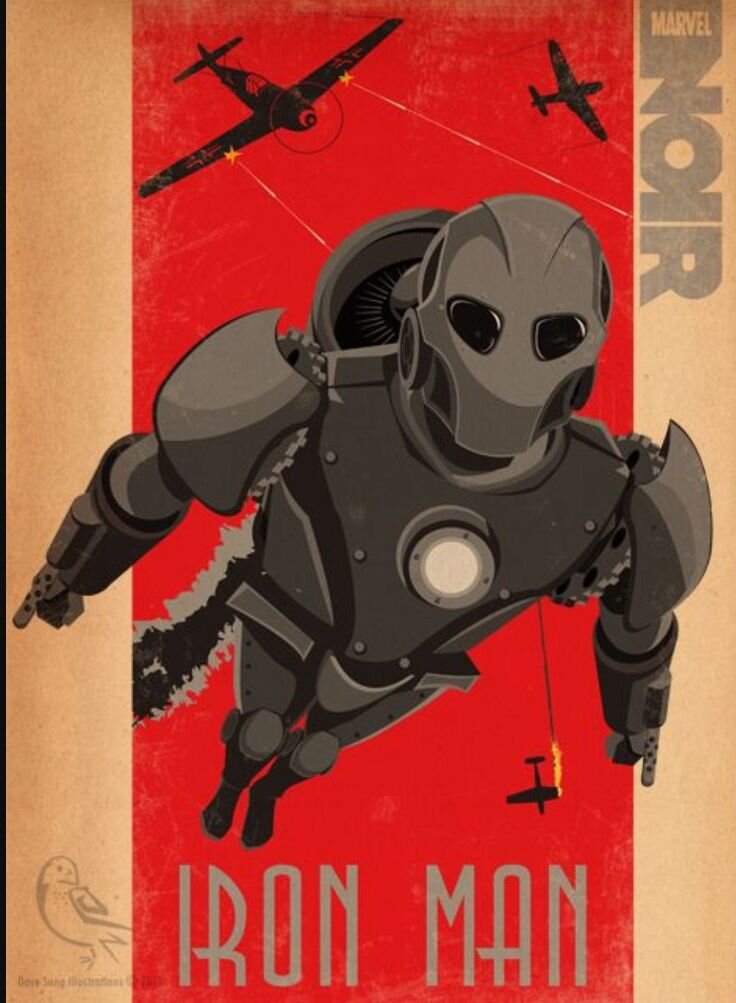 В Нуаре Железного человека Тони Старк - промышленник в 1930-х. Он - также авантюрист, деяния которого зарегистрированы в Чудесах: Журнал Мужского Приключения. Он первоначально сопровождается его партнером Джеймсом Родсом, его личным помощником Джульеттой Нефарией и его биографом Верджилом Манси. Когда Нефария показана как работающий с нацистами (определенно Бэрон Земо и Бэрон фон Штрукер), и Верджил убит, их роль в истории взята новыми Перечными Форматами чертежной бумаги биографа Старка. Его сердце, поврежденное на более раннем приключении, Старк сохраняет его идущий с repulsor технологией установленным и перезаряжаемым Промышленным инженером Старка Эдвином Джарвисом. Исследуя таинственный источник энергии в руинах Атлантиды, Перечные Форматы чертежной бумаги похищены нацистами и взятые в их цитадель в Норвегии. Чтобы спасти ее, Старка и Дона Родса, иски большой брони власти, построенной Джарвисом, но, потрясены обнаружить, что 'Бэрон Земо' - фактически пропавший отец Тони Говард С