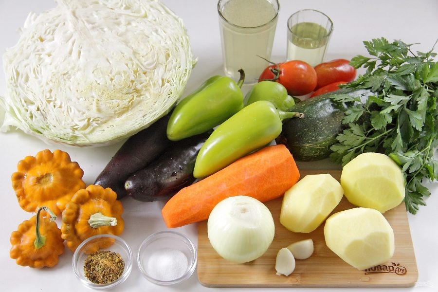 Приготовим вкусный и полезный ужин! Правило не наедаться на ночь известно всем. Ничего тяжёлого, мучного не стоит есть позднее, чем за три часа до того, как вы отправитесь спать. Мясные блюда (говядина, свинина), как бы они ни были вами любимы, стоит всё же съесть в обед. А для легкого ужина можно выбрать какое-нибудь блюдо из мяса птицы (филе курочки или индейки). Отличным дополнением станут овощи, которые прекрасно сочетаются с мясом птицы. Овощи могут стать вполне самостоятельным вечерним блюдом. В этом случае, нет ничего лучше, чем овощное рагу. Поделюсь с вами одним рецептом! Нам понадобится: 2. Обжариваем курицу на разогретой сковородке до корочки, добавляем лук, перемешиваем. Даём луку обжарится до золотистого цвета. 3. После выкладываем капусту и морковь. Жарим ещё 5 минут. 4.Следующими выкладываем картофель и баклажаны. Рагу должно прожариться минут 10, картофель доводим до состояния полуготовности. 5. Последними в кастрюлю попадают кабачок и сладкий пер