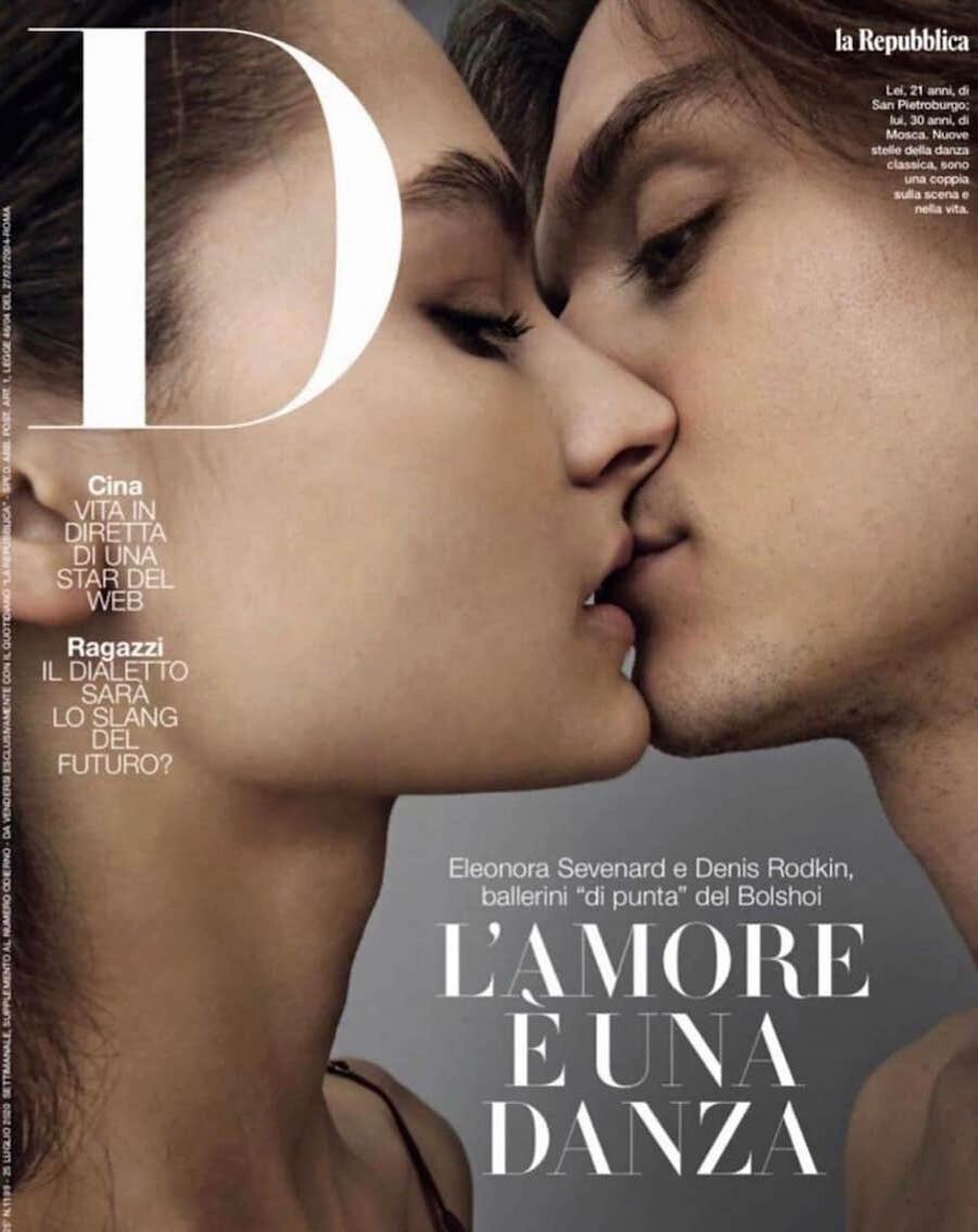 Это обложка итальянского журнала La Repubblica за июль месяц. Мои любимые и очень дорогие сердцу Элеонора Севенард и Денис Родькин! Когда 18 июня 2016 года на сцене Мариинского театра после спектакля «Фея Кукол» я представил Элю Денису, я надеялся, что, может, вдруг так случится, ему понравится моя любимая девочка. Но я не мог даже подозревать, что Эле уже нравился Денис, и она с таким смущением с ним поздоровалась... Прошёл год, Элеонора окончила академию. Получила приглашение в труппу БТ, и через полгода мне Денис сообщил эту волшебную новость, что он очарован Элей, и они теперь вместе! Счастью моему не было предела. Когда я вижу эту пару, я испытываю гордость за мой родной Большой, за свой труд и вклад в этих наикрасивейших артистов, за своё желание видеть их вместе! Больше всего на свете я хочу счастья и радости моим любимым! Николай Цискаридзе