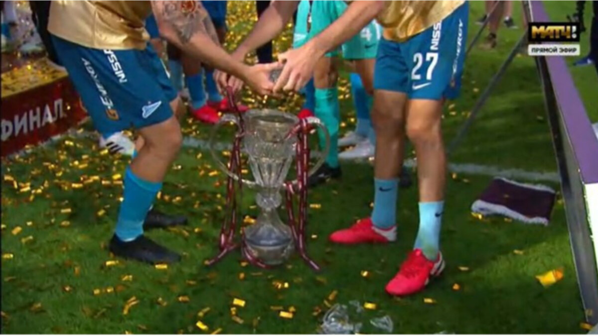 Игроки «Зенита» разбили Кубок России во время церемонии награждения: Футболисты «Зенита» уронили и разбили Кубок России в ходе церемонии награждения. «Зенит» в финале турнира обыграл «Химки» со счетом 1:0, единственный мяч в игре забил Артем Дзюба. После игры состоялась традиционная церемония награждения игроков, во время которой капитан «Зенита» Бранислав Иванович уронил трофей. В результате у кубка откололась верхняя часть. Может не так все плохо)? Пиши своё мнение в Комментприи