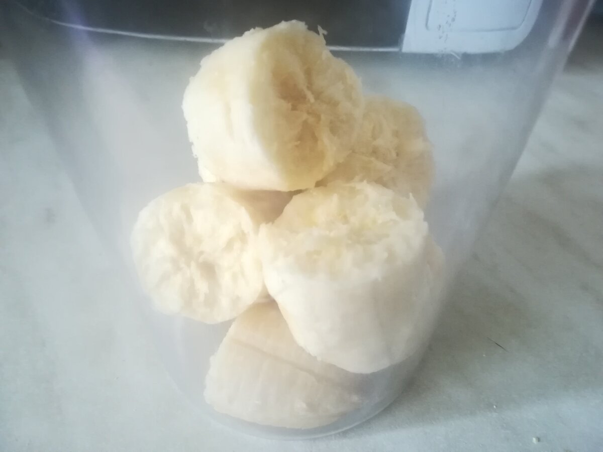 Банан разломить на несколько частей и сложить в стакан блендера.