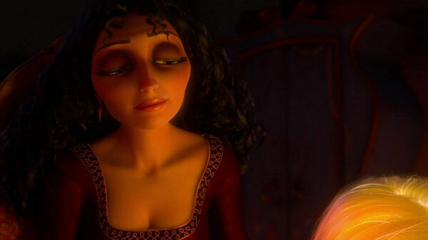 Начало м/ф чётко дает понять, что Матушка Готель – человек, который находится одной ногой в могиле. Она старая женщина, отчаянно цепляющаяся за жизнь, и только её обман в отношении Рапунцель, персонажа-ребёнка, помогает ей держаться за жизнь. Не ребёнок здесь зависит от родителя, а родитель – от ребёнка. (Здравствуй, ювенальная юстиция.)