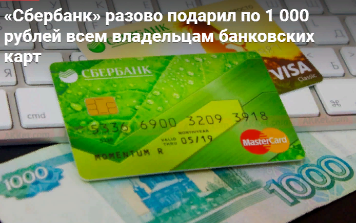 Нет на российской территории более крупной и известной кредитной организации, чем «Сбербанк». Делать она старается все ради того, чтобы зарабатывать как можно больше, пуская ради этого в ход все средства и методы. Данное финансовое учреждение является настолько известным, что его клиентами являются более чем 100 млн человек, все из которых крайне активно используют те услуги и возможности, доступ к которым этот банк так и вовсе вообще в состоянии предоставить. Специально для того, чтобы приятно порадовать всех россиян, эта кредитная организация посчитала необходимым пойти на такой шаг, которого никто даже и близко никто не ожидал. Так, в частности, она решила подарить всем владельцам банковских карт определенные денежные суммы, но конечно же не просто так.
