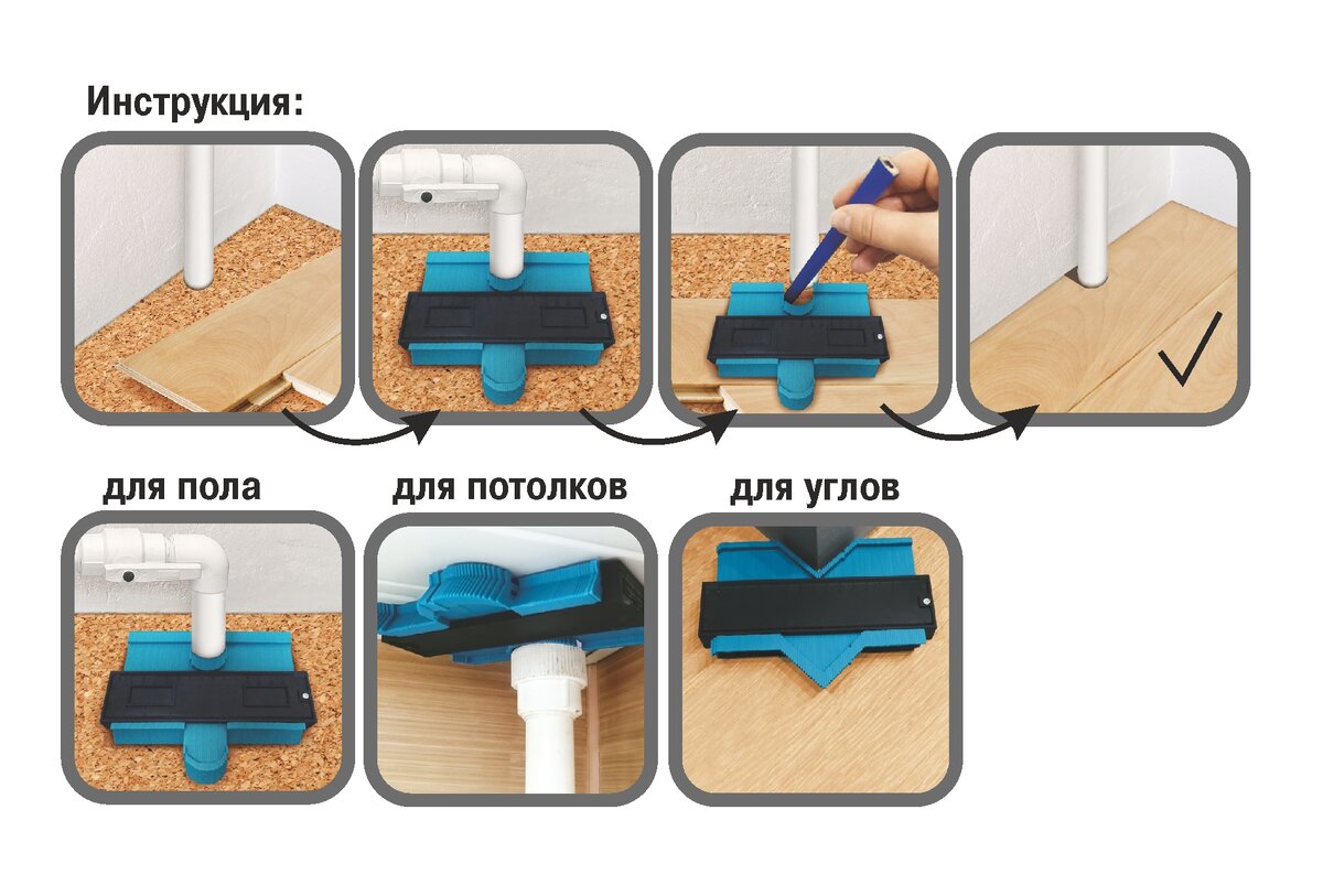 Универсальный инструмент поможет избежать сложных замеров при подрезке материалов. На российском рынке появился удобный инструмент, который облегчает работу при сложных замерах. Шаблон необходим для точной подрезки отделочных материалов (ламинат, паркетная доска, кафельная литка, керамогранит, линолеум и т.д.), а также для раскройки металла, деревообработки, моделирования и создания "hand made" изделий. Подвижные пластины инструмента позволяют в точности повторить форму детали и перенести ее на нужную поверхность. Для удобства на инструменте предусмотрена измерительная шкала длиной 12 см. Инструкция: https://www.plintusa.com/production/tools/template/
