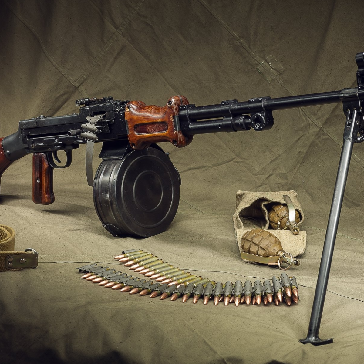 В ходе боевых действий Великой Отечественной Войны руководству РККА (Советской Армии) стала понятна необходимость легкого пехотного ручного пулемета, приспособленного для стрельбы не только с тяжелого станка, но и с сошек, т.е. более мобильного, нежели состоящие на вооружении станковые пулеметы, или тот же ДП-27. Таким оружием стал Ручной Пулемет Дегтярева (иногда – Ручной-Пехотный-Дегтярева) РПД, индекс ГАУ — 56-Р-327, принятый на вооружение в 1944 году. Стоит отметить, что РПД стал первым образцом, принятым на вооружение, разработанный под патрон образца 1943 года. Кстати говоря, во многом именно применение промежуточного патрона и позволило уменьшить вес пулемета. РПД представляет собой автоматическое оружие, работающее по газоотводному принципу, с газовым поршнем, расположенным под стволом, с длинным рабочим ходом. Запирание ствола осуществляется двумя боевыми личинками на затворе, за упоры в вырезах ствольной коробки. Огонь ведется с открытого затвора, УСМ допускает ведение толь