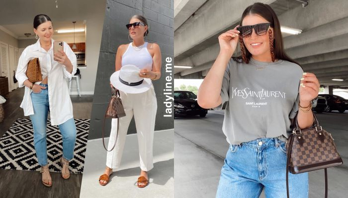 Белый топ + классические светлые брюки с высокой посадкой +шляпа + брендовая мини-сумка + сандалии на плоском ходу +актуальная многослойная бижутерия - аутфит, который приковывает к себе внимание с первого взгляда.