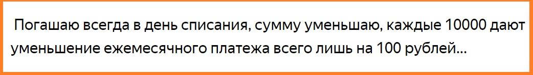 Часто в момент принятия решения эта разница не кажется такой существенной. И вот человек взял кредит, начинает выплачивать и вносит частично-досрочное погашение на 50 тысяч. И ежемесячный платеж уменьшается на 450 рублей. Всего лишь. На 450 рублей. Так совсем неинтересно. Хоть соотношение одинаковое: 200.000 к 1800 или 50.000 к 450, но, когда не получаешь, а отдаешь крупную сумму, ожидаешь... бóльшей отдачи что ли.