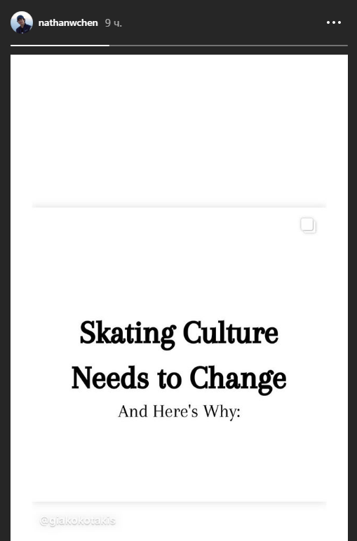 UPD 28.07: заметила, что не сделала важное уточнее в статье, из-за чего ввела в заблуждение некоторых читателей. Сам пост написан американской фигуристкой Гией Кокотакис. Нейтан просто поделился ссылкой на него. Это не меняет того факта, что Чен поддерживает написанное там. Просто хочу уточнить, что это не его слова, а слова, с которыми он согласился.