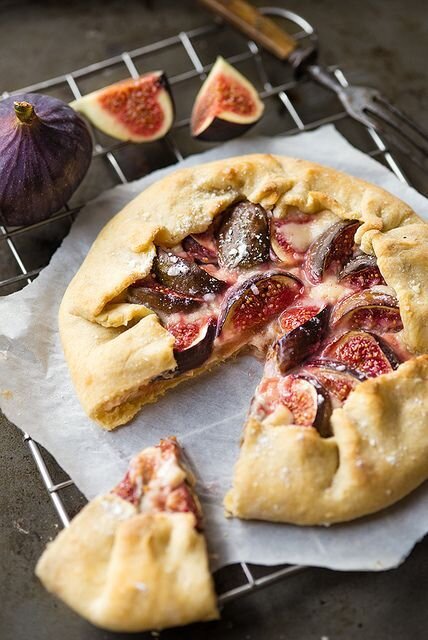 Разложите инжир поверх козьего сыра, затем сложите край теста на инжире, складывая его по мере того, как вы будете обходить галетку.