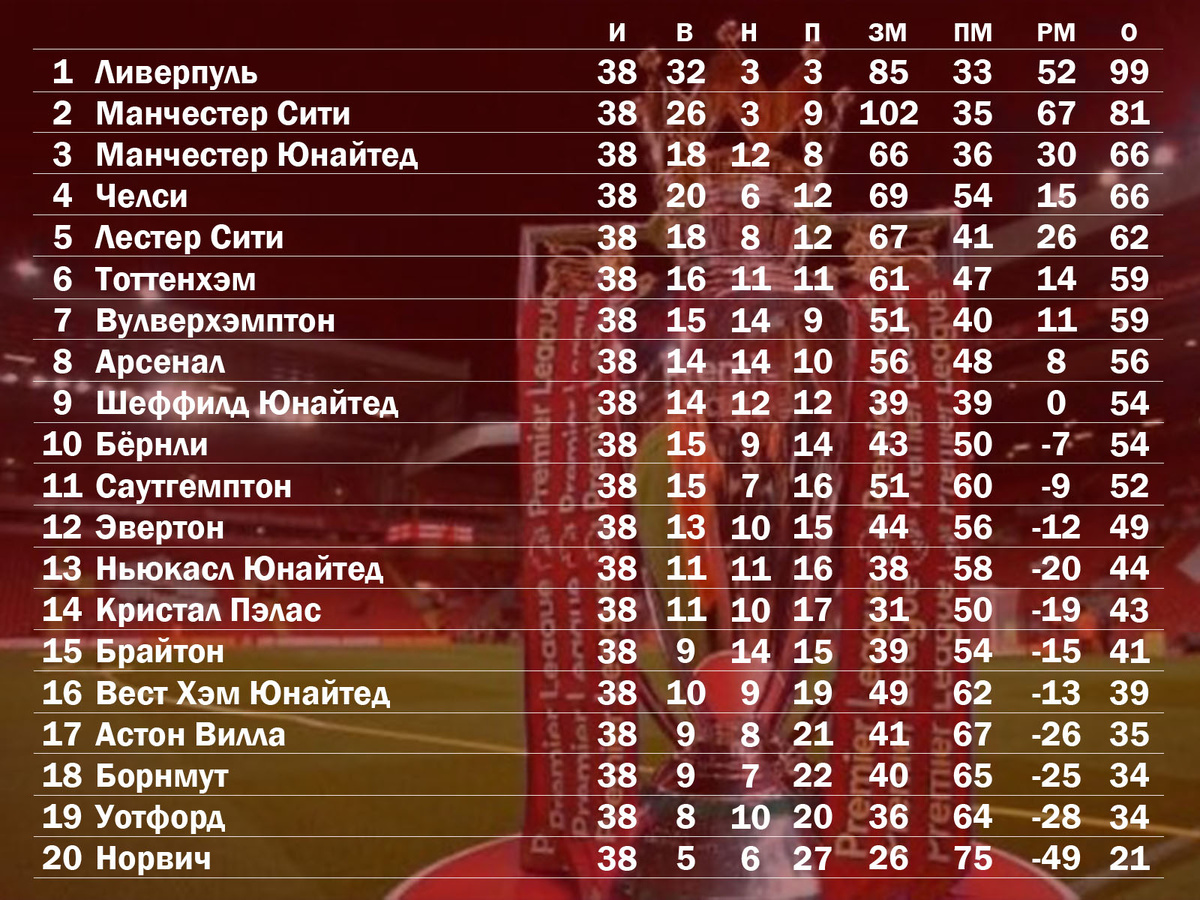 Вчера завершился сезон АПЛ. Предлагаю вам обсудить тех, чей сезон выдался максимально неудачным по тем, или иным причинам. Итоги сезона АПЛ 2019/2020. Ливерпуль - чемпион, думаю вам это известно. Путевки в Лигу чемпионов получили Ливерпуль, Челси, МЮ и Ман Сити, который был в шаге от непопадания в ЛЧ и перехода в Чемпионшип из-за нарушения финансового фейр-плей, однако ФИФА рассмотрели апелляцию, поданную клубом, и изменили решение. Место в Лиге Европы получили Лестер, Тоттенхэм, Арсенал/Вулверхэмптон. Лучшим бомбардиром стал Джейми Варди (Лестер). На его счету 23 гола. Лучшего ассистента получил Кевин Де Брюйне (Ман.Сити). Он отдал 20 голевых передач. Ну а Золотую Перчатку забрал Эдерсон (Ман.Сити). Он оставил ворота сухими в 16 матчах из 35. В Чемпионшип отправятся Борнмут, Уотфорд и Норвич. Топ 5 неудачников АПЛ сезона 2019/2020. 5. Лестер. Возможно многие удивлены присутствием лис в этом топе. Ведь весь сезон у клуба очень хорошо шли дела. Многие игроки индивидуально отли
