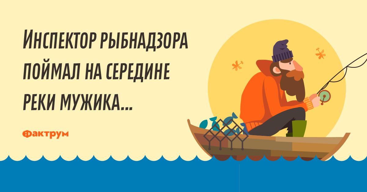 Рыбинспектор задерживает мужика с двумя ведрами рыбы на берегу реки. Рыбинспектор спрашивает у мужика:-У Вас есть разрешение на отлов такого количества рыбы? Мужик: Нет. Но оно мне не нужно. Это моя домашняя рыба. Рыбинспектор: Домашняя? Как это? Мужик: Ну, кто-то держит собак, кто-то попугаев, а я - речную рыбу. Каждый вечер я привожу их сюда, чтобы выгулять. Я выпускаю их в воду, они себе плавают, а потом я подаю им сигнал и они возвращаются ко мне, я кладу их в ведра и мы едем домой, в аквариум. Рыбинспектор: Ерунда! Рыба не может такого делать! Мужик: Не верите? Я могу показать. Вот смотрите... С этими словами мужик подходит к воде и переворачивает одно за одним оба ведра. Сам остается на берегу в ожидании. Через несколько минут Рыбинспектор не выдерживает: -Ну? Мужик: Что ну? Рыбинспектор: Когда ты их позовешь назад? Мужик: Позову кого? Рыбинспектор: Рыб! Мужик: Каких рыб?ты че ебанутый?