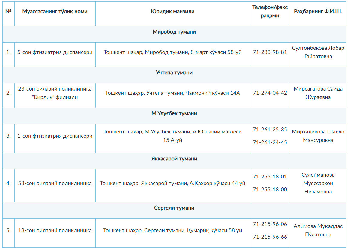 Узбекистан, Ташкент – АН Podrobno.uz. В Ташкенте в качестве практической помощи жителям с подозрением на коронавирус, с подтверждённым диагнозом и страдающим от пневмонии, организовано 10 специальных поликлиник, сообщает корреспондент Podrobno.uz. "Данные поликлиники работают круглосуточно, граждане, обратившись сюда, могут воспользоваться квалифицированной медицинской помощью", – сообщили в столичном хокимияте.