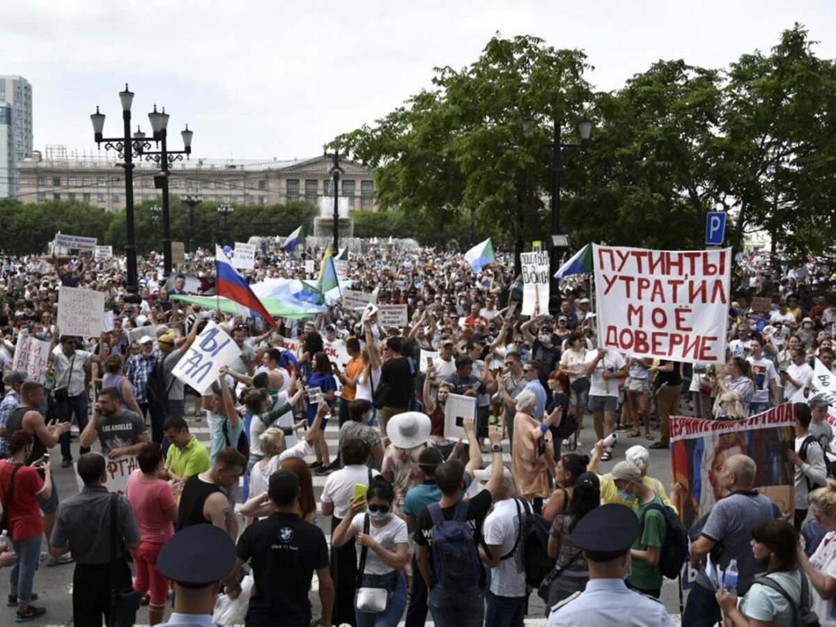 Протесты в Хабаровске продолжаются, и если по началу лозунги были только в поддержку Фургала, то на последних протестных акциях стали слышны лозунги против Путина и Единой России, а Кремль почему то молчит и не разгоняет народ который поддерживает своего губернатора.