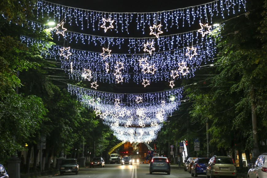На этой неделе в центре Воронежа снова зажгут праздничную иллюминацию, выключенную на время пандемии коронавируса. Об этом сообщили в пресс-службе мэрии, сегодня, 27 июля. Красочное освещение традиционно будут включать в выходные и праздничные дни. Возобновить работу праздничной иллюминации распорядился глава города. Решение связано соснижением ежедневно выявляемых случаев COVID-19 и поэтапным снятием «коронавирусных» ограничений в регионе. Элеонора Титова Больше новостей – на сайте «Полиграф.Медиа»