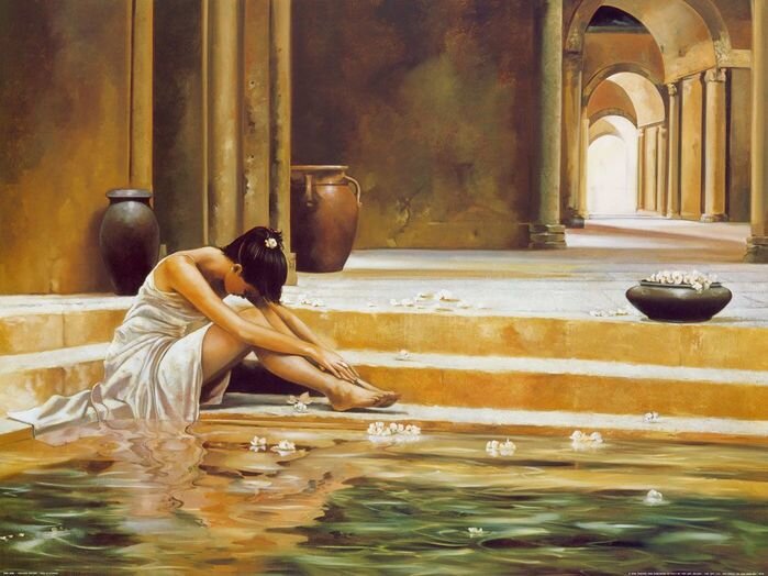 Рон Ди Сценза (1954 г.р)-американский художник итальянского происхождения специализирующийся на фигуративной живописи с женскими образами на первом плане. Имеет степень бакалавра изобразительных искусств, окончил нью-йоркскую художественную школу. Для своего творчества художник использует льняной холст и масляные краски. Главной изюминкой его работ принято считать игру тени и света, благодаря которой картины, порой имеющие недостатки в технике, становятся полноценными шедеврами. Несмотря на то, что Рон Ди Сценза всю свою жизнь провёл в Соединённых Штатах, его стиль написания картин более похож не на вычурный, раскованный американский, а на знойный романтический средиземноморский. Это обусловлено тем, что в раннем возрасте родители возили юного художника на каникулы в Рим, где, для развития таланта, показывали ему произведения Леонардо, Караваджо и других великих художников прошлых эпох. В работах Ди Сценза трудно подчеркнуть их жанровую принадлежность. С технической точки зрения это