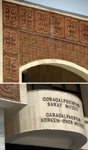 Единственная (обычно пишу - "единственная официальная", но тут просто единственная) достопримечательность Нукуса - Музея искусств Каракалпакстана имени Игоря Савицкого. Огромный музейный комплекс на момент моей поездки был в процессе строительства, и пока открыто только здание слева с коричневым узором на фасаде. На самом деле сюда я сходил первым делом, только заселившись в гостиницу - ведь что попало "Эрмитажем в пустыне" не назовут!