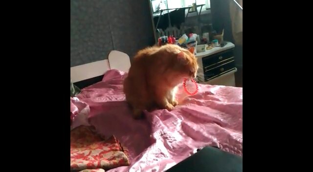 Томский Ронька пытается выбрать одну из основных конфессий. Он пока еще не определился с саном и самой конфессией, но чётки для себя у хозяйки уже стащил. Тренируется их важно перебирать. Зубами.