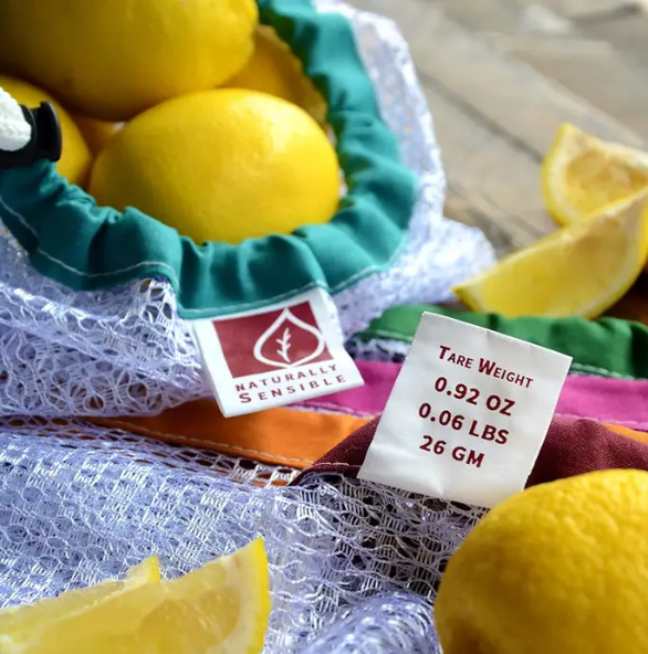 - 1. Пять пачек мешков из нейлоновой сетки многоразового использования для упаковки персиков, подъема лимонов, помидоров, перевозки моркови, перевозки ... ну, вы поняли.
