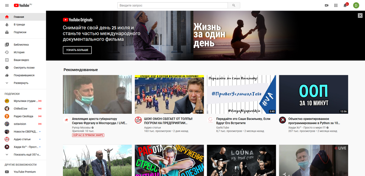 Сам сайт https://lifeinaday.youtube/