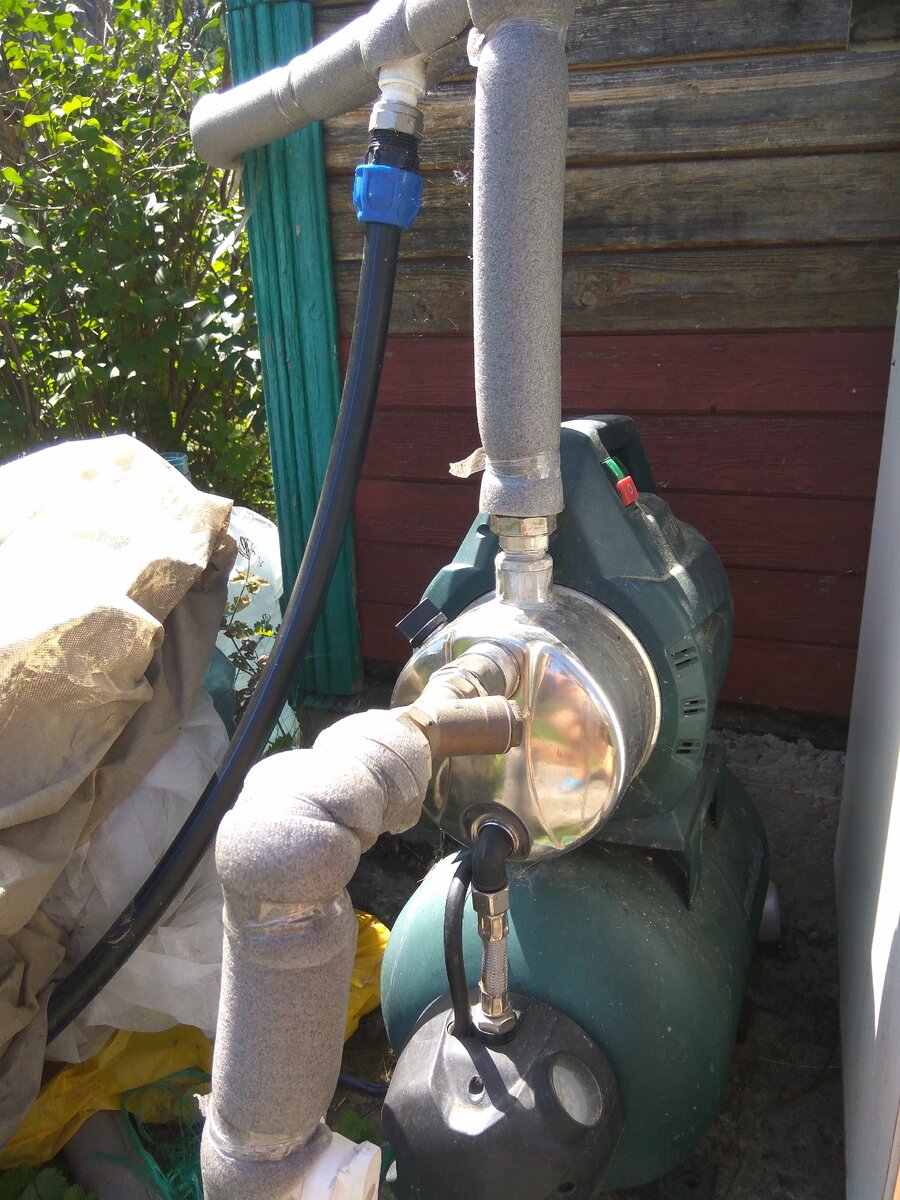 Основная труба подачи воды от станции поделена на три. Первый узел- это кухня в доме. Труба идёт на кухню, напрямую к водонагревателю. Её к сожалению не видно,