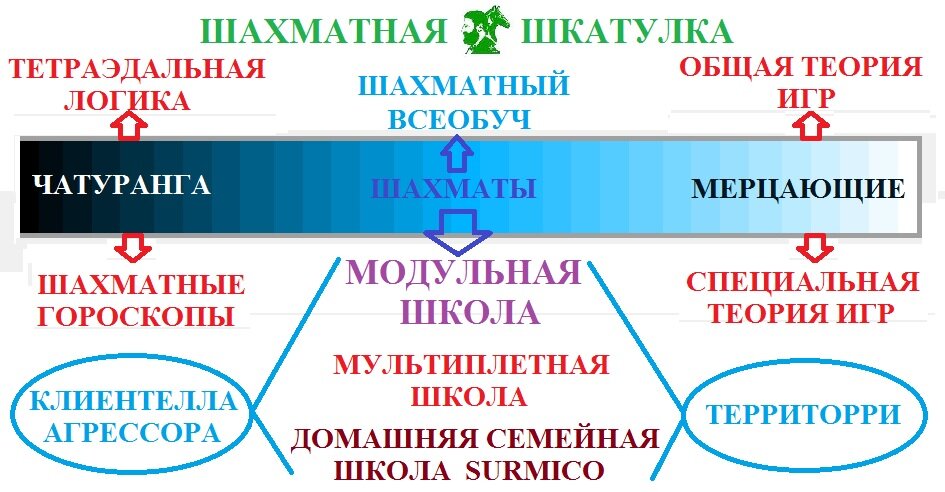 Шахматный инструментарий примененный к организационным структурам школ дал технологические решения моих школ. Исследование происхождения шахмат - реконструкция Чатуранги - выводит на методологию и Тетраэдальную логику.
