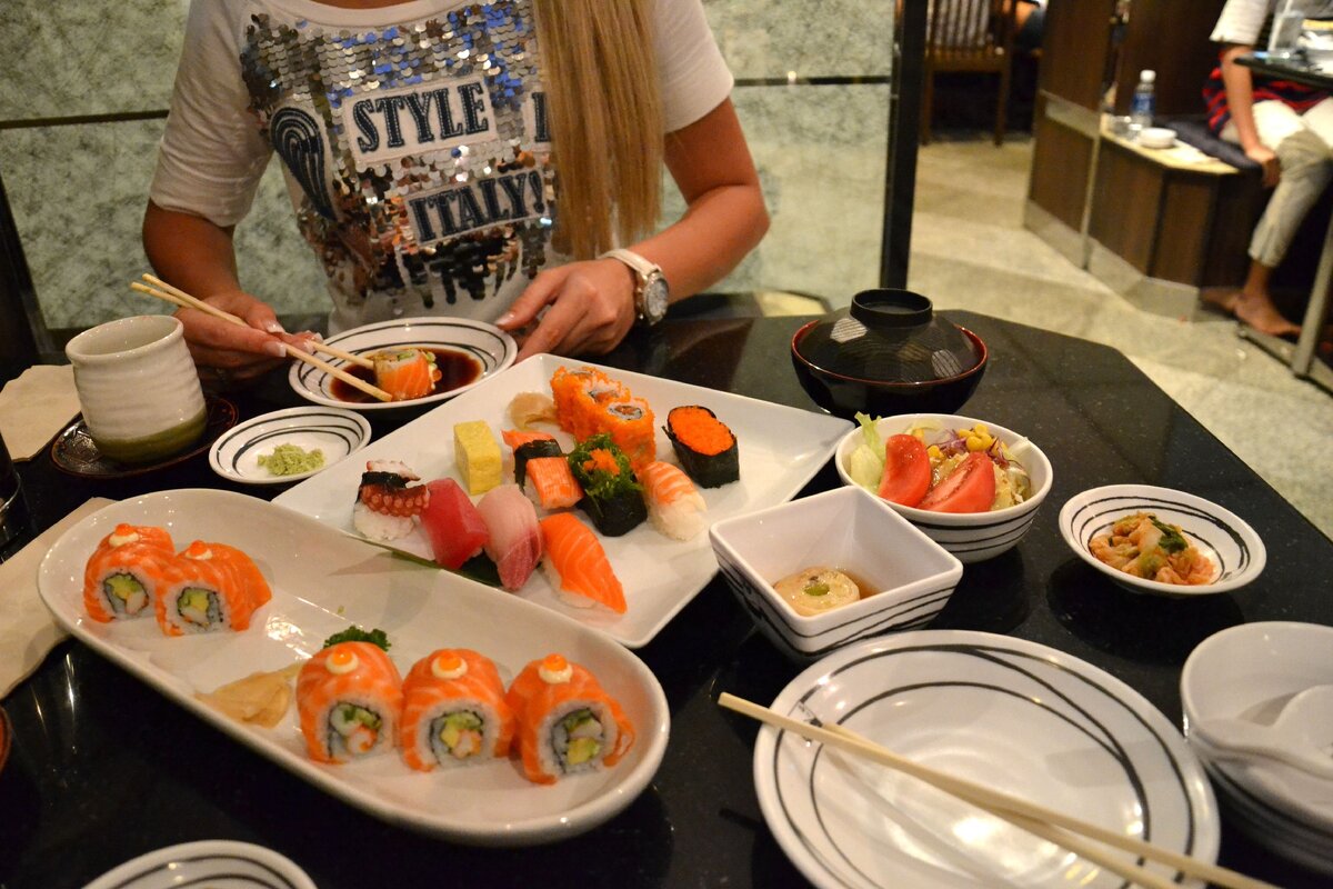 А ведь туристические места Таиланда — по сути гастрономический рай. Здесь собраны, по-моему, все кухни мира. Например, впервые была попробована корейская кухня. Но о ней отдельно, потом. Тут даже самый вкусный Макдональдс. У нас, в России, вроде всё то же самое, а в разы хуже. Именно в Паттайе мы попробовали самые вкусные суши в нашей жизни. Я не про те суши, которые по 5-10 бат на ночных рынках. В Биг Си можно встретить полноценные рестораны японской кухни. Там даже повара — японцы. Зацените только фотографии всего этого кулинарного восторга: По стоимости — не так уж и страшно. Дешевле, чем в России у узбеков. 1000 бат вышел ужин на двоих. Еще пару раз ходили уже большими компаниями. Так и получалось 500-700 бат на человека, ни в чём себе не отказывая. А еще тут же можно попробовать саке. Горячий, "бодрящий" напиток. Ну и, естественно, десерт: