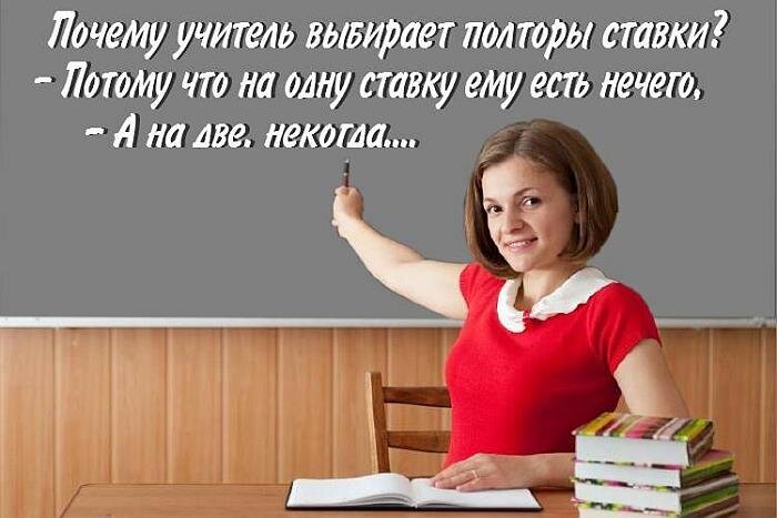 На самом деле,эта картинка абсолютно несмешная. Учителя,работающие в регионах,получают нищенские зарплаты,на которые прожить невозможно. К примеру, мой оклад с нагрузкой 18 часов равен 9000. Здорово,неправда ли? Да,есть стимулирующие выплаты. С ними набегает 15000. Но разве можно прожить в наше время на такие деньги? Почему в Москве учителя получают суммы в три раза больше? Мы кушать и нормально одеваться не хотим что-ли? Вот так учителям и приходится брать несколько ставок,иначе выжить невозможно. Но с такими нагрузками действительно некогда жить, так как уходя из школы и приходя домой,работа никуда не девается. Остаются звонки родителей,отчеты,планы и подготовка уроков на следующий день. Вот не хочется работать за такие деньги,это смешно. Учителей нехватка,все бегут. Да,с сентября обещают надбавку классным руководителям,но нас уже предупредили,что снимут предыдущие выплаты ( хотя В.В говорил,что так делать нельзя). Эх, вот нравится мне работать с детьми,но не за такие деньги...