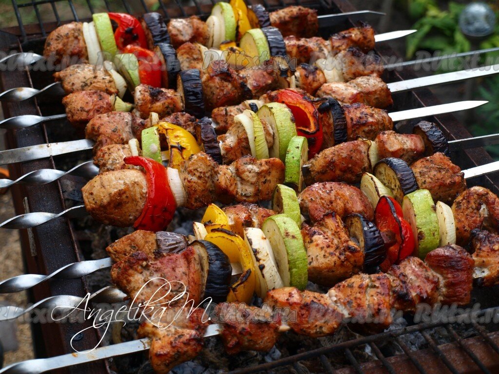 Шашлык Показать все Описание Описание Шашлы́к — изначально блюдо из баранины мелкой нарезки, нанизанное на шампур и запеченное на древесном угле в мангале; при этом возможно применение маринада, от простейших специй до сложных многокомпонентных составов, требующих особого приготовления