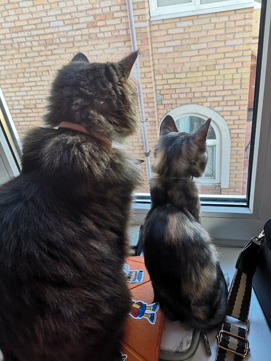 Сфоткал кота и кошку которые сидят на окне. Отгадайте где кто?