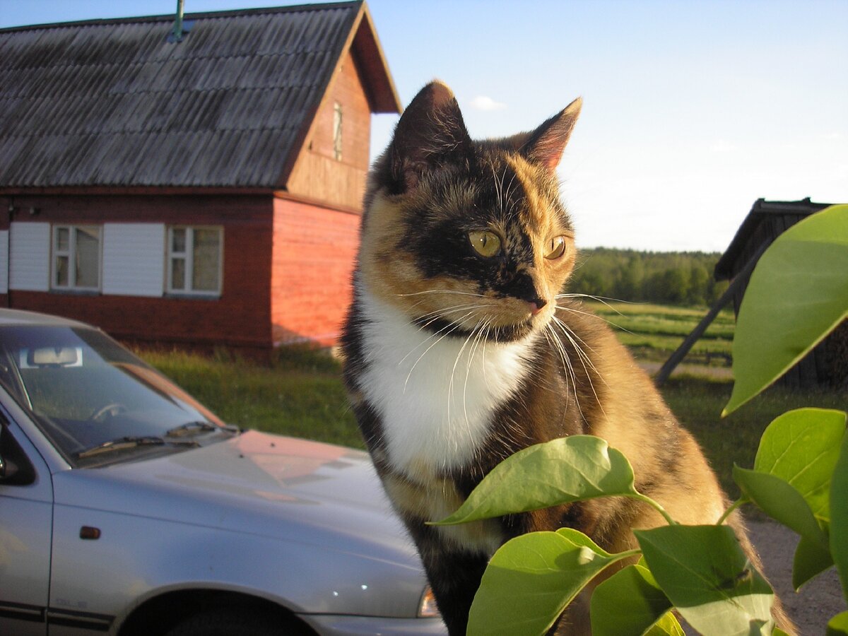 Пять лет назад почти в один день со мной родила в соседском сарае кошка – одного мальчика и трех девочек. Котик весь черный в белых ботинках, в белой манишке и белой шапочке, а кошечки – все трехцветные, их в народе «богатками» называют.