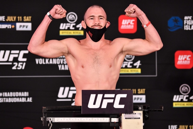 Бразилец Леонардо Сантос на коротком уведомлении вышел на бой против Романа Богатова. Россиянин имел перед дебютным боем в UFC рекордс — 10-0, и максимальные амбиции в лучшей лиге планеты. Рекордс его бразильского оппонента особого значения сегодня не имеет, поскольку за последние 5 лет он провёл лишь 3 боя. В какой форме 40-летний ветеран подошёл в поединку не понятно никому. Сразу бросилось в глаза, насколько длиннее руки Сантоса, который очень спокойно и уверенно начал бой. Атаковал фирменными двойками, контролировал центр октагона. Роман пропустил несколько приличных ударов, а затем без умысла попал пальцами в газа бразильцу. После паузы Леонардо сумел оформить тейкдаун. Роман быстро поднялся, но результативное действие в копилку его соперника занесли. В концовке раунда Богатов проверил соперника бэкфистом и попытаться провести тейкдаун. Россиянину это не удалось, а вот чёрный пос по джиу-джитсу своего шанса не упустил. Правда, второй перевод на канвас судьи ему не засчитали. Сод
