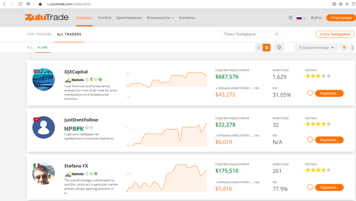 Ранее я уже рассказывал, как я познакомился с торговлей на Форексе и каких результатов я смог добиться. Как оказалось - это совсем не сложно и после пары первых сделок уже можно почувствовать аппетит в неплохому заработку, тем более если эти первые сделки были удачными. По мере того, как я сотрудничал с Форекс мне удалось получить опыт взаимодействия с одним из его партнеров - Зулутрейд(zulutrade.com). Как они сами себя позиционируют - Social Forex Trading, т.е. социальная торговля на Форексе. Как мы знаем, социальная - это значит для обычных людей. Торговля на Форексе - понятие тоже соответствует определению, все цены аналогичны рыночным, как в торговом терминале. Этот ресурс как мне кажется может быть полезен для следующих целей: 1. Торговля своими реальными деньгами. Честно говоря, именно на этом ресурсе торговать я не пробовал и не могу дать ни положительных, ни отрицательных отзывов. Я предпочитаю торги на платформе MetaTrader4. Думаю, что временные задержки в получении информац