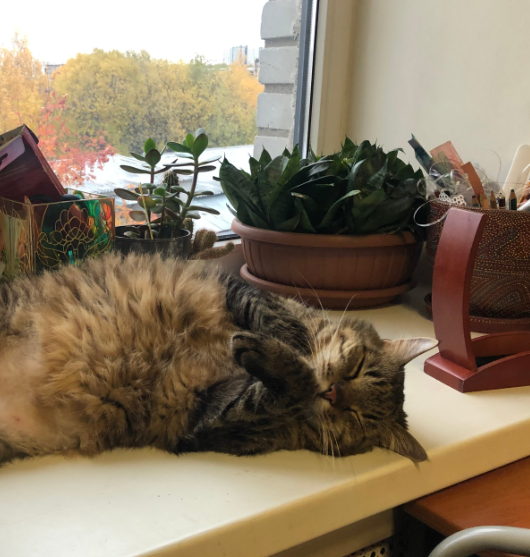 Бывают особо выдающиеся дни. Насыщенные приятными хлопотами, например, общественные предпраздничные дни или дни личных праздников моих сослуживцев. Вот у Вас, когда главные праздники в году? 1 января, 23 февраля, 8 марта, 9 мая и т.д.? А для меня праздники - это предпраздничные дни в календаре. Это приятное время. У нас и в будни праздники бывают! Иногда, конечно, и форс-мажоры по работе случаются. Тогда я контролирую процесс из укрытия. У нас сотрудники умные, опытные, под моим пристальным наблюдением быстро любые неприятные ситуации разруливают . Бывают дни в офисе тихие, спокойные. Тогда я знаете, как работаю? Вот наглядно покажу: Лежу и работаю. Правым прищуренным глазом весь производственный процесс в этой комнате, в которой нахожусь, к