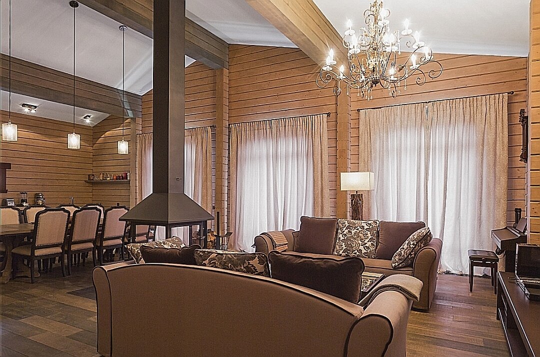 Всем доброго времени суток! Невероятный проект деревянного дома в Новодарьино от нашей компании Iconic Design. В интерьере дома присутствует намек на классику: шикарная люстра, бархатные вставки в текстиле, но нельзя заметить, что почти вся мебель сделана из натуральных материалов, а палитра цветов очень спокойная и приглушенная. Виртуозно вышитый на шторах рисунок, как вино, раскрывается во всей красе, когда приближаешься ближе. В одной из комнат повешены римские шторы, очень функциональные и нежные. Рисунок цветов и растений как никогда кстати в "экодом". Двойные портеры в спальне повешены для блокирования солнечных лучей. А шторы в кабинете тоже имеют свою изюминку. Внизу полотна расположены канты мягкого кофейного оттенка. Утонченные розы бежевого цвета на шторах во второй спальне не могут не быть акцентом в комнате. Наша компания Iconic Design более 10 лет занимается дизайном и пошивом штор на заказ. Мы поможем принести в ваш дом или квартиру ярких красок, а может спокойс