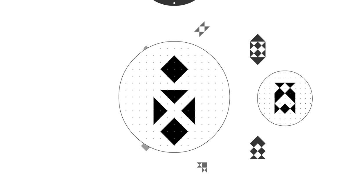 Как я писал выше, VOI— минималистичная головоломка, использующая геометрические фигуры. Это могут быть треугольники, квадраты, ромбы и всевозможные многоугольники чёрного цвета. В каждом уровне нам предлагается расположить их определенным образом. Но что, если скажу, что "чёрная фигура"+"чёрная фигура" будет равняться "белая фигура"?