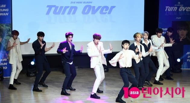 16 июля группа 1THE9 провели шоукейс третьего миниальбома Turn Over в ILJI ART HALL. Название титульной песни - BAD GUY. На фото сверху вниз: Чон Доём, Чон Джинсон, Чон Тэкхён, Ким Джунсо, Ким Тэу, Ли Сынхван, Пак Сонвон, Шин Ечан, Ю Ёнха Корреспондент Чо Джунвон wizard333@tenasia.co.kr