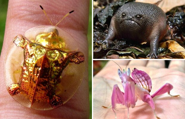 Возможно, все эти животные появились благодаря странным природным совпадениям, а возможно — это был хорошо продуманный план её величества природы. Самый богатый источник творчества действительно находится в Матери-природе. Она единственная, кто может дать жизнь этим необычным созданиям. Смотрите сами: Жук «золотая черепаха» Мелкие жуки «золотая черепаха» меняют цвет во время своего развития, во время спаривания или даже в случае опасности. Африканский узкорот Африканский узкорот находятся на высотах от 1600 до 2000 метров в восточной и южной частях Африки. Этот вид земноводных не прыгает, а гуляет. Гусеницы бабочек семейства Дальцерида Из-за своей внешности гусеницы бабочек семейства Дальцерида имеют несколько прозвищ: «жемчужина», «фруктовая паста» или «кристалл». Саранча Вот саранча с совершенно необычным цветом. Морской слон Южный морской слон является крупнейшим ластоногим, это полуводные морские млекопитающие. Самцы могут достигать длины почти 6 метров и весить до 3700 кг. Желто