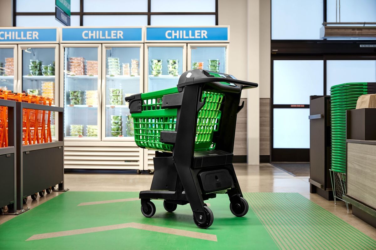 Amazon выпустила умные тележки для покупок, которые похожи на миниатюрные магазины Amazon Go: механизм распознавания изображений и весы определяют, что покупатели кладут в свои тележки, и устраняют необходимость в проверках на выходе.