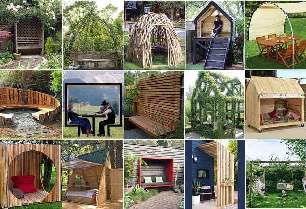 Беседку можно построить практически «из ничего» — лозы или оставшихся от стройки брусов.