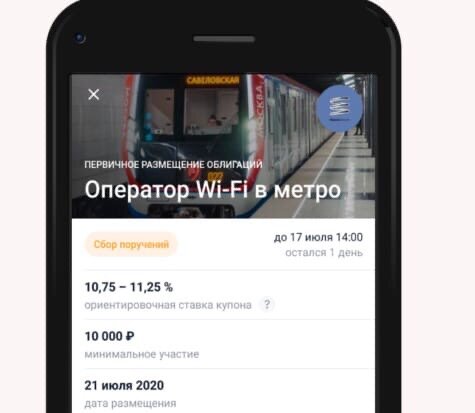 Доброго времени суток друзья Не давно появилась очень интересная акция, и сбор заявок на участие заканчивается 17 июля Доходность этой облигации составляет 10,75-11,25% Компания уже была упомянута в некоторых статьях. Она занимается развитием сети wi-fi в метро и является крупнейшим игроком на рынка. Компания демонстрирует отличные финансовые показатели, основной доход от государства. В первую очередь от Московского метро. Я считаю, что доходность будет расти, так как сейчас нет таких облигаций с высоким доходом и надежностью. Еще и ЦБ планирует снизить ключевую ставку до 4%. И это сильно повысит спрос на облигации с высокой доходностью. Что лучше? Иметь доходность по вкладу в 3% при инфляции в 3.2%, либо доходность в 11%. Ведь это отличная инвестиция. Конечно, никто не может предположить будут ли те или иные акции расти либо падать. Высокодоходные инвестиции это всегда риск. Каждый из нас сам решает, как ему распоряжаться своими деньгами. Моя задача просто проинформировать, а по