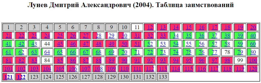 В библиографическом списке имеются записи о 14 работах Чекмарева В.В. (№62 на стр. 127, №92 на стр. 92, №103, 109-117 на стр. 131-132), ссылки на них можно найти на стр. 17, 24-26, 44, 49, 51-52, 70, 75, 80, 83, а упоминания – на стр. 4 и 6 введения. Согласно автореферату (№10-11 на стр. 22), в 2004 г. у соискателя вышло две статьи в соавторстве с Чекмаревым В.В.: одна объемом 0,29 п.л., из которых 0,1 п.л. соискателя, и объемом 0,31 п.л., из которых 0,15 п.л. соискателя. Эксперт сообщества обращает внимание, что объем совместных работ и материалов, оформленных соискателем как заимствуемые из трудов Чекмарева В.В., не соответствует объему совпадающих материалов.